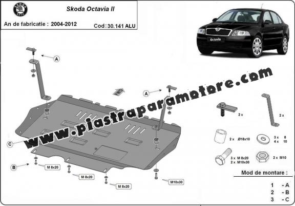 Piastra paramotore di alluminio Skoda Octavia 2 (2004-2012)