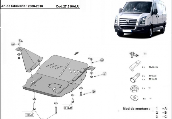 Piastra paramotore di alluminio Volkswagen Crafter (2006-2016)