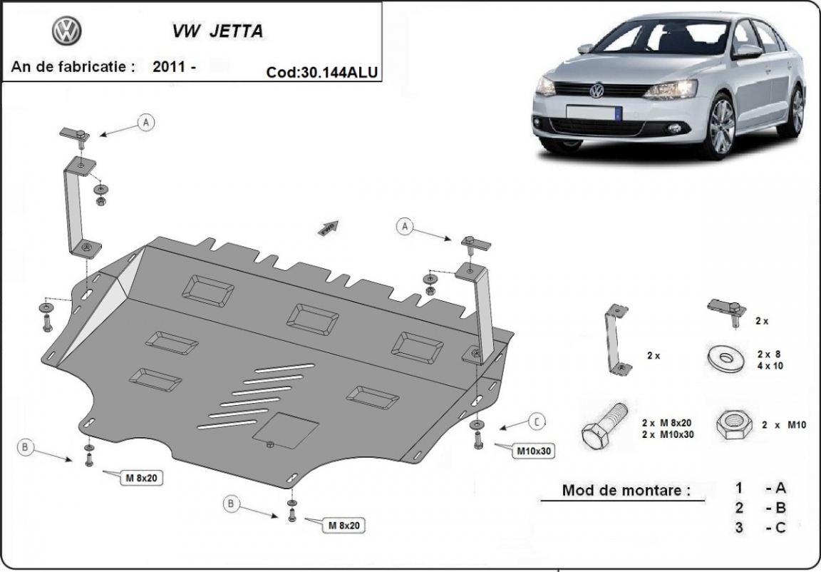 Piastra paramotore di alluminio VW Jetta (2011-2017)