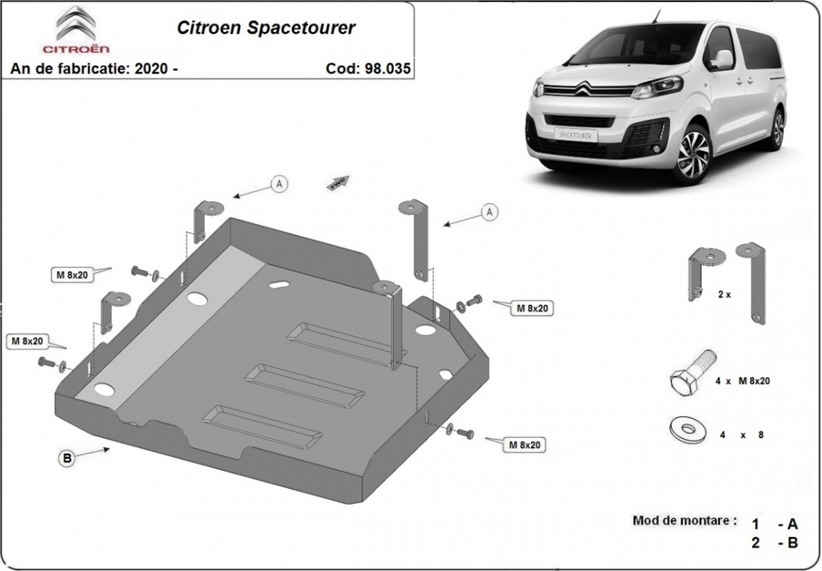 La piastra paramotore di Acciaio è nuova e si adatta perfettamente a tutte le versioni di Citroen Spacetourer prodotte tra il 2020 e il 2026. É fatto di lamiera d'Acciaio di 2mm. Bulloni, dadi, rondelle e tutti gli accessori allegati Ogni piastra è resistente alla corrosione ed è ricoperto di vernice in polvere. Le piastre di protezione del motore sono attrezzati di coppie saldate per la miglior resistenza alle forze exteriori. |