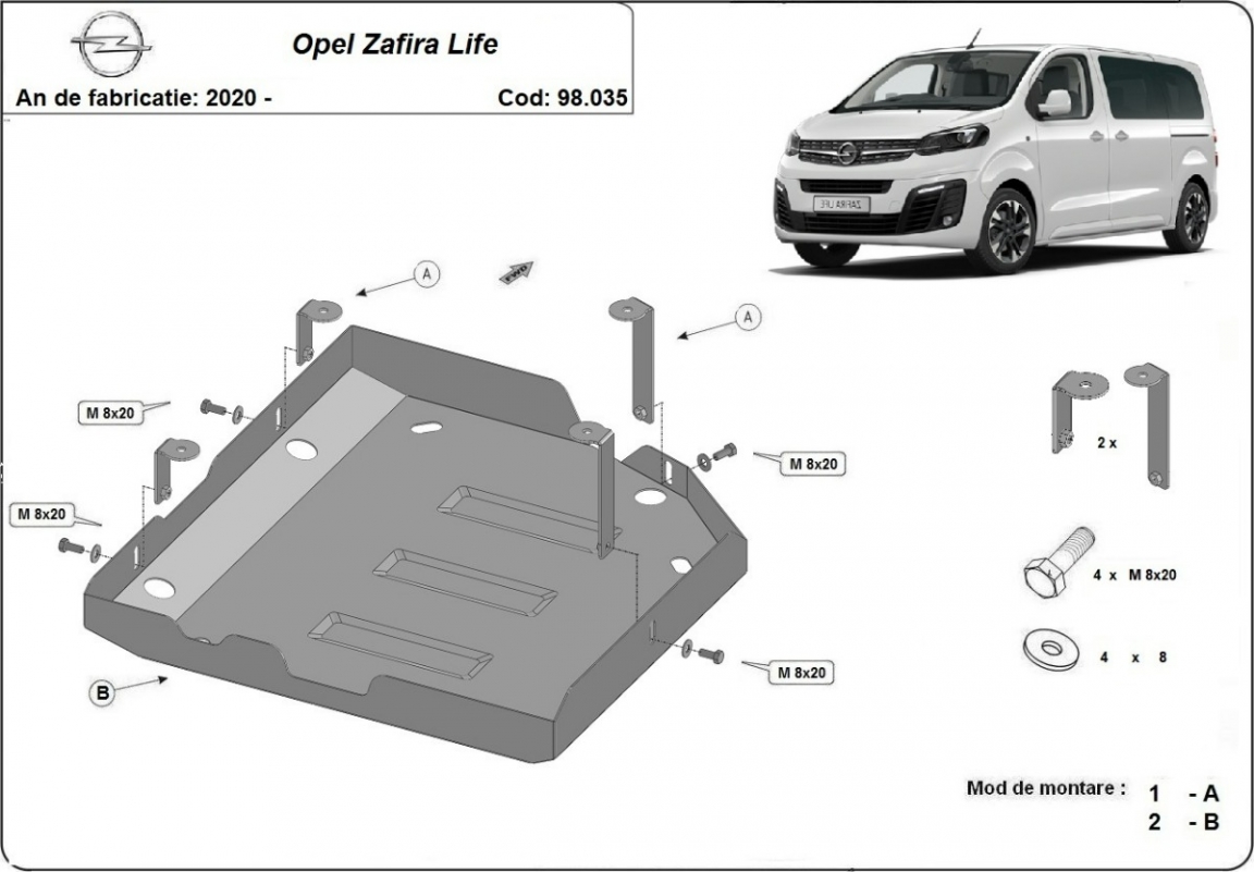La piastra paramotore di Acciaio è nuova e si adatta perfettamente a tutte le versioni di Opel Zafira Life prodotte tra il 2020 e il 2026. É fatto di lamiera d'Acciaio di 2mm. Bulloni, dadi, rondelle e tutti gli accessori allegati Ogni piastra è resistente alla corrosione ed è ricoperto di vernice in polvere. Le piastre di protezione del motore sono attrezzati di coppie saldate per la miglior resistenza alle forze exteriori. |