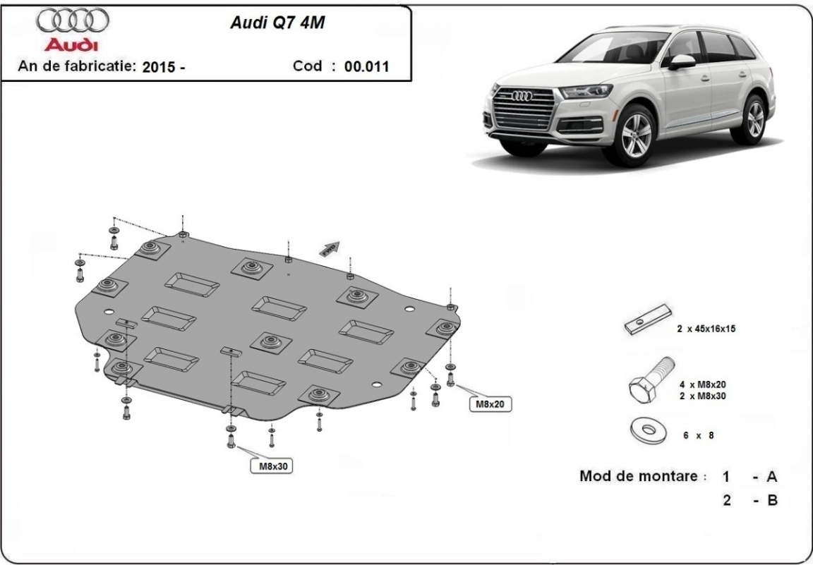 La piastra paramotore di Acciaio è nuova e si adatta perfettamente a tutte le versioni di Audi Q7 prodotte tra il 2015 e il 2026. É fatto di lamiera d'Acciaio di 2mm. Bulloni, dadi, rondelle e tutti gli accessori allegati Ogni piastra è resistente alla corrosione ed è ricoperto di vernice in polvere. Le piastre di protezione del motore sono attrezzati di coppie saldate per la miglior resistenza alle forze exteriori. |