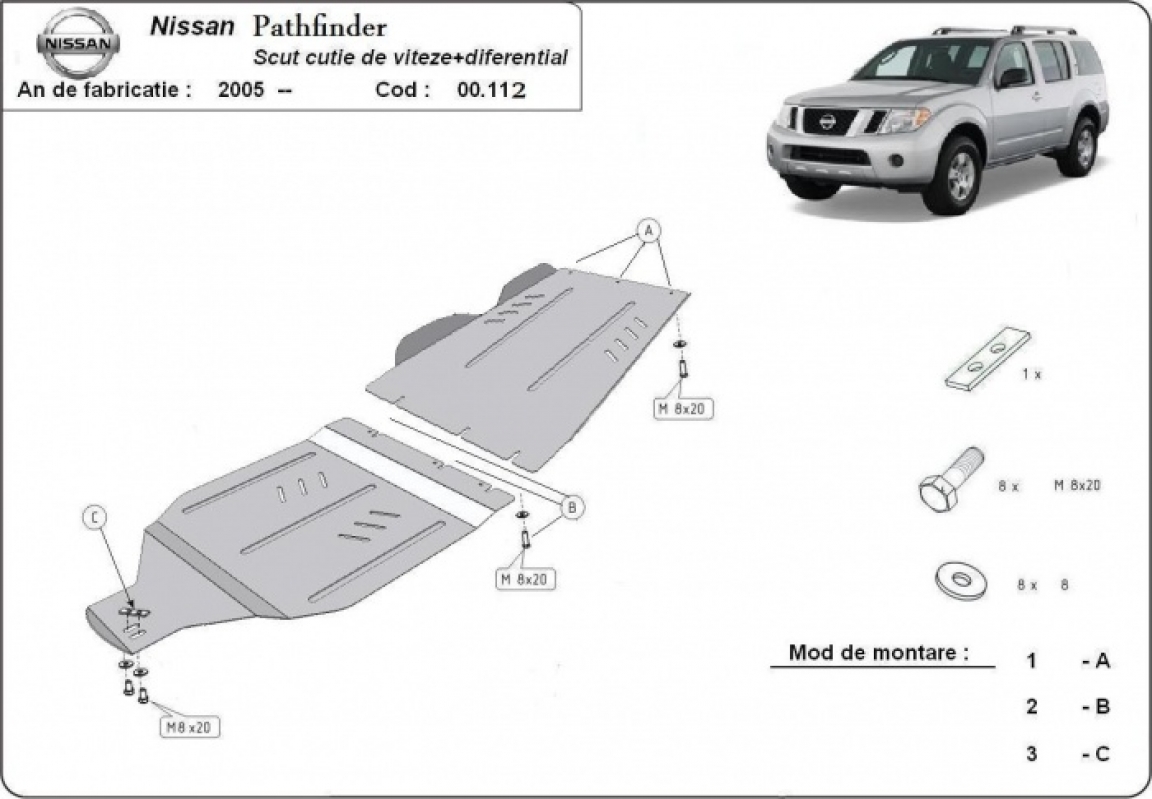 Protezione di acciaio per la differenziale e il cambio Nissan Pathfinder