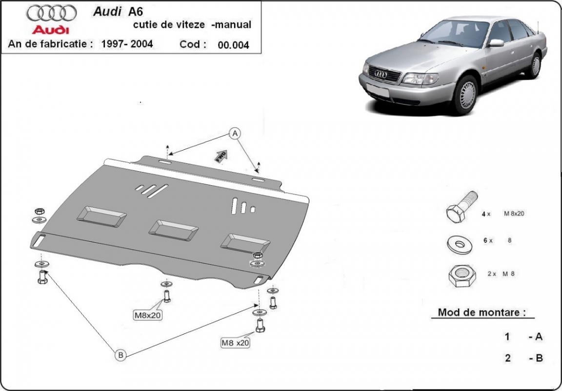 Protezione di acciaio per il cambio manuale Audi A6 (1997-2004)