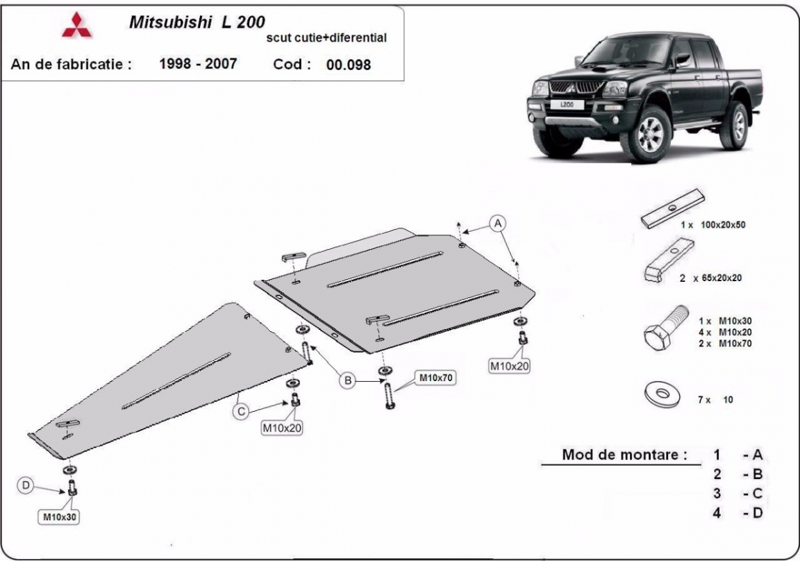 Protezione di acciaio per la differenziale e il cambio Mitsubishi L 200 (1998-2007)