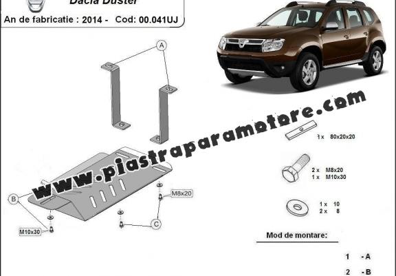 La piastra paramotore di Alluminio è nuova e si adatta perfettamente alla Dacia Duster 4x4, con le seguenti versioni motore / trazione: 4x4 - prodotte tra il 2014 e il 2024. É fatto di lamiera d'Alluminio di 4mm. Gli scudi sono in alluminio, ma i supporti di fissaggio sono in acciaio. Bulloni, dadi, rondelle e tutti gli accessori allegati Ogni piastra è resistente alla corrosione ed è ricoperto di vernice in polvere. Le piastre di protezione del motore sono attrezzati di coppie saldate per la miglior resistenza alle forze exteriori. |
