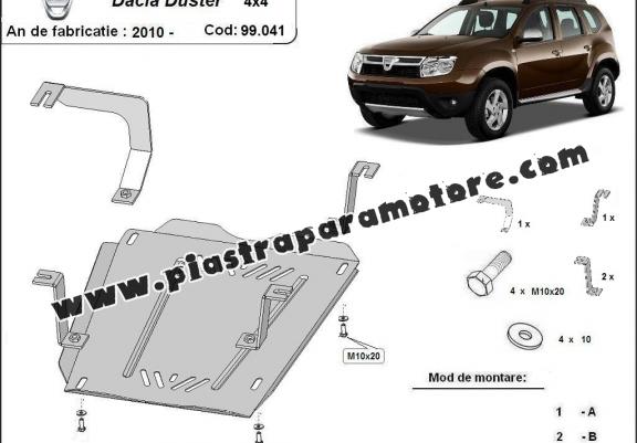 La piastra paramotore di Alluminio è nuova e si adatta perfettamente alla Dacia Duster, con le seguenti versioni motore / trazione: 4x4 - prodotte tra il 2010 e il 2024. É fatto di lamiera d'Alluminio di 3mm. Gli scudi sono in alluminio, ma i supporti di fissaggio sono in acciaio. Bulloni, dadi, rondelle e tutti gli accessori allegati Ogni piastra è resistente alla corrosione ed è ricoperto di vernice in polvere. Le piastre di protezione del motore sono attrezzati di coppie saldate per la miglior resistenza alle forze exteriori. |